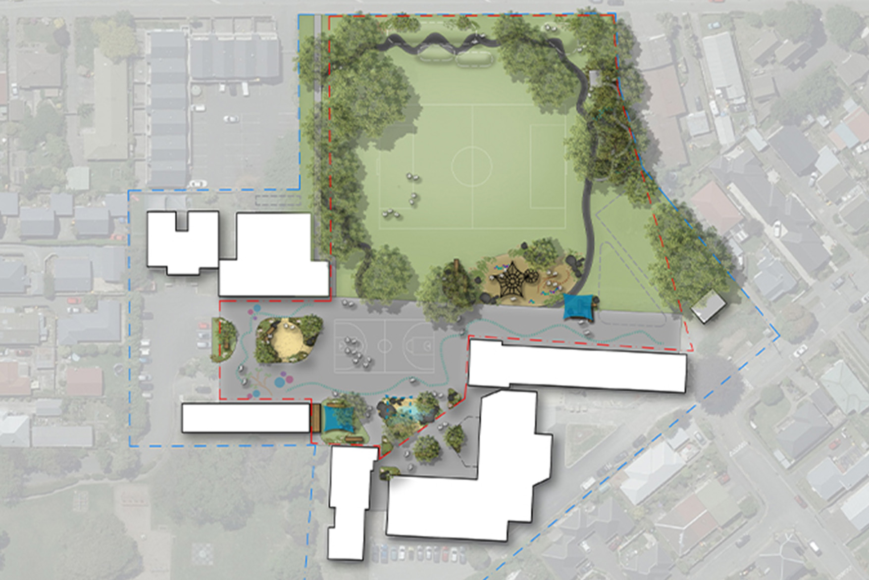 The design was informed by the school's cultural narrative of The Tree For the Nesting Birds - “Our kura and community is like a ngāhere where our children are sheltered and find the resources they need to grow” where the different play zones related to concepts of different activities of New Zealand native birds. The zones include a main adventure play playground, sand and water play, a remembrance space, pump track and a nature play area.