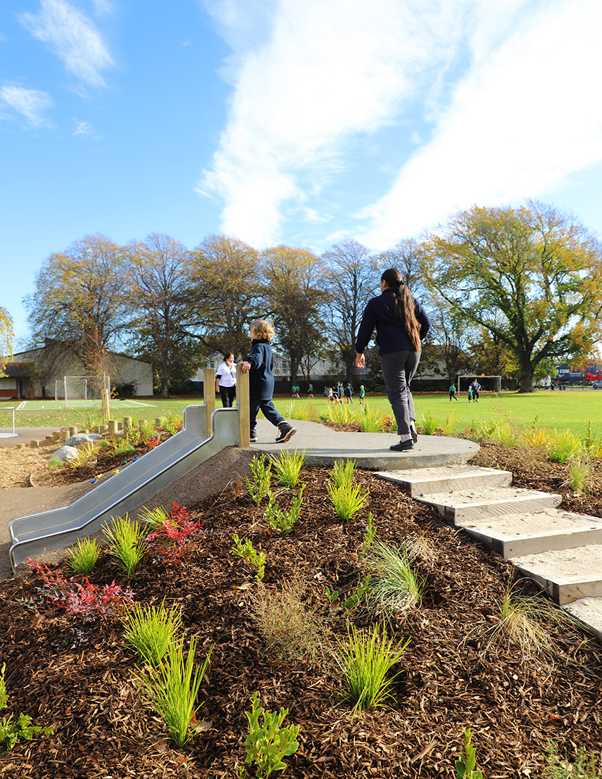 The playground aims to serve a role in the wider community as a place for people to come and enjoy with friends and families outside of school time, and where past students and families of students would feel welcome to return.