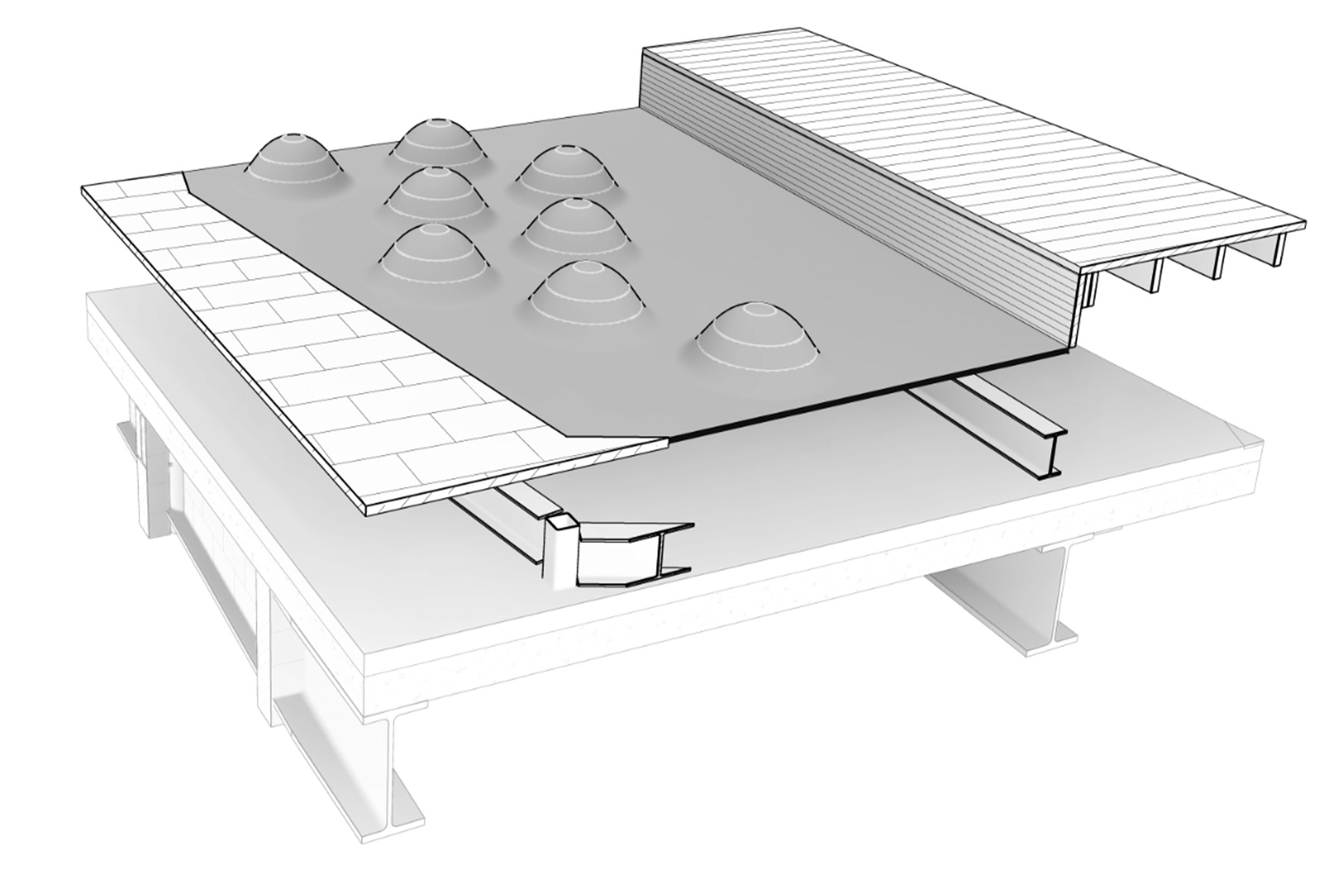 One of the most unique aspects of the project was the technically challenging site, with the plaza sitting on top of a basement roof. The structure had to meet strict seismic requirements and avoid placing too much weight on the roof, all while ensuring the basement remained waterproof.