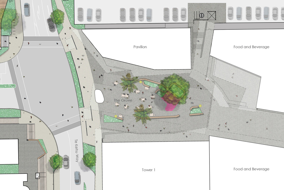 Additionally, there was a desire to improve the microclimate of The Grove dining precinct, which was often affected by wind, significantly limiting use of this key public space. The growing number of workers and residents at Sylvia Park makes this space increasingly important as part of the shared public realm.