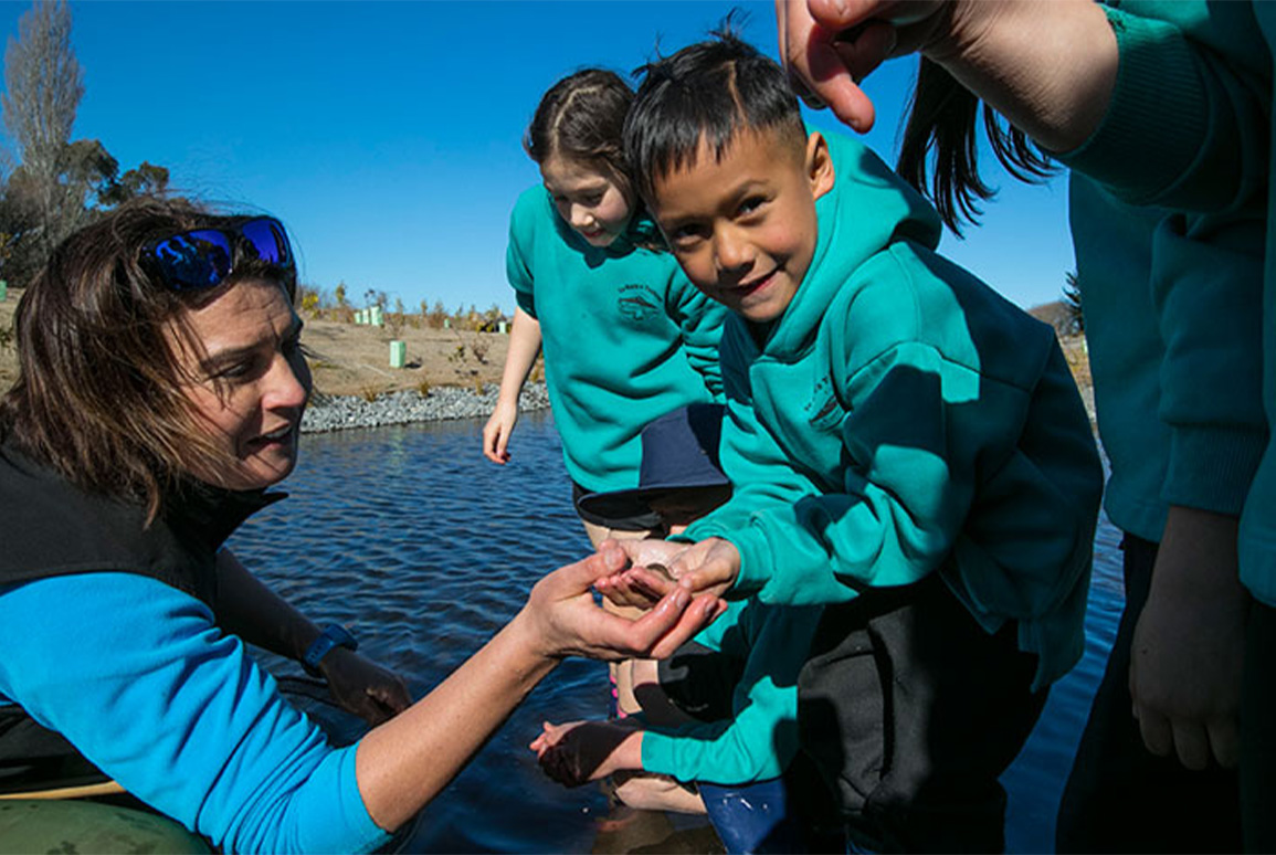 As part of the opening celebration, Boffa Miskell ecologist Dr Tanya Blakely assisted the Christchurch City Council (CCC) and Ngāi Tūāhuriri in releasing tuna (eels) and inanga into the new creek, as a symbol of new life. Students from Tuahiwi School helped Tanya release the fish into Kā Pūtahi Creek.