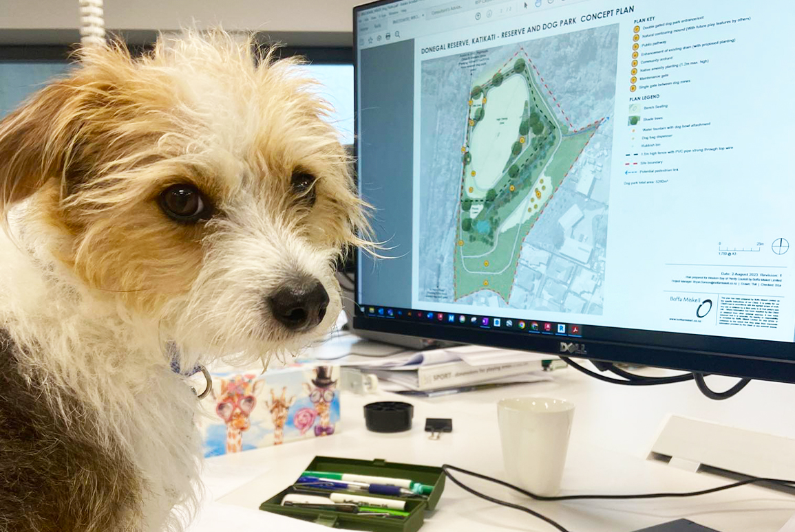 “These smaller projects are usually a component of a much bigger job,” says Bryan. “In this case, Boffa Miskell and our client (WBoPDC) are redeveloping a number of public recreation areas in the Western Bay of Plenty. Something like these two dog parks are an opportunity for our early career landscape architects to take the lead in the design and experience the whole ‘life-cycle’ of a project first-hand – from consultation through to construction – while being mentored by a more senior designer.”