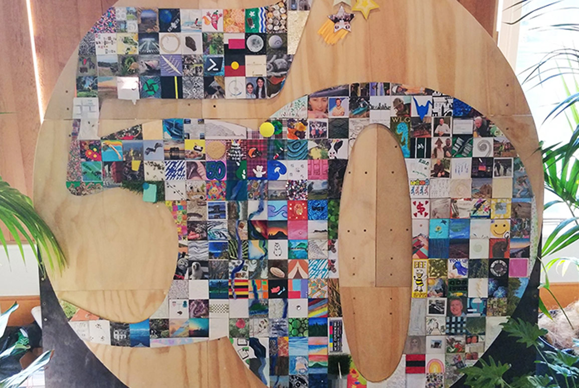 Earlier in the year, each Boffa Miskell employee received a small wooden tile to decorate, but no further explanation was given. At check-in, a jigsaw puzzle mosaic of the company’s 50th logo was on display, as the fully-assembled artwork represented the important contribution of each unique individual that makes up the whole.