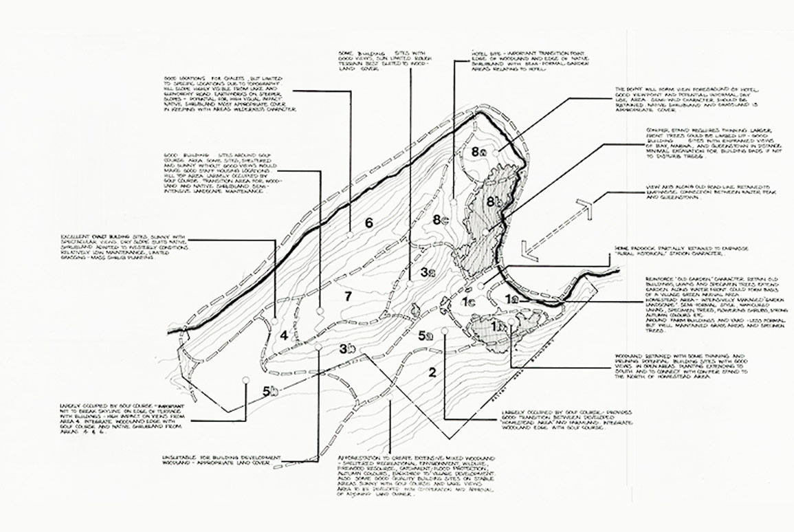 ln 1986, Boffa Miskell was commissioned as part of a larger project team to prepare a Masterplan for the 154ha Tourist Resort Zone within Walter Peak Station on the shores of Lake Wakatipu. The design for the international destination resort was to include a major hotel, up to 800 condominiums, a village centre, an 18-hole international golf course, and associated recreational facilities. The overall development was to accommodate a population of around 4,000 people.