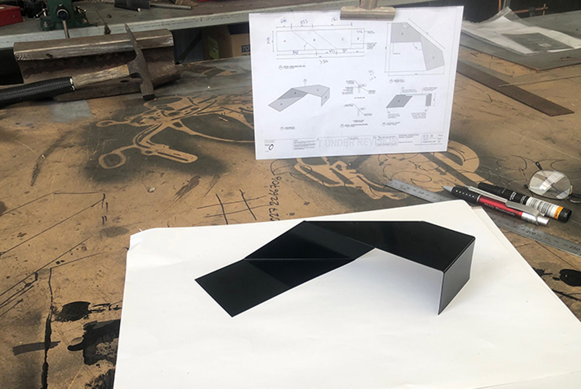 After the finalist announcement, Team Tenax began by exploring the cost and feasibility of constructing the bench with several manufacturers. As part of that process, they were gifted a small model by Mobile Sheetmetals of Fielding, which the team plans to paint up and display in the Auckland office.