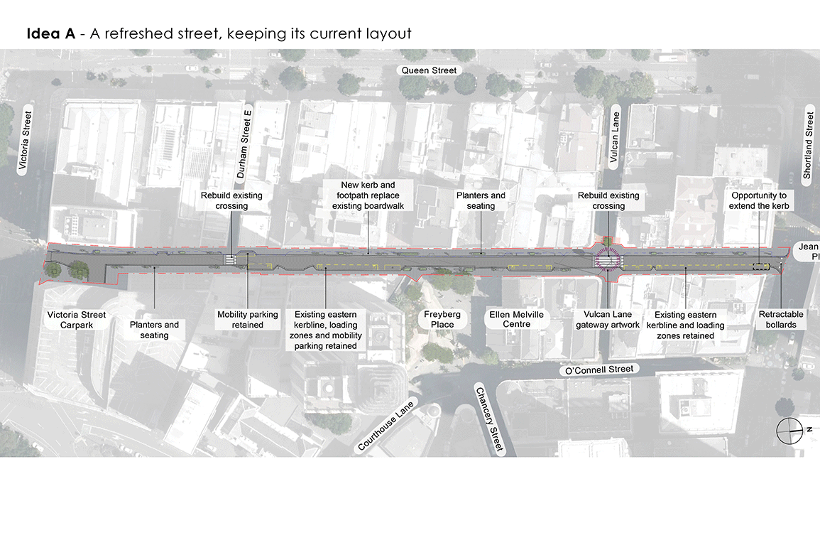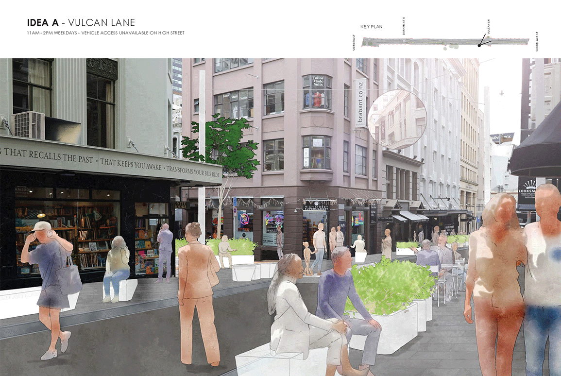 Yoko: The design team worked with the engagement findings, alongside input from technical experts, asset owners and operators, and mana whenua to develop three Design Ideas in response to the Community Aspirations. The three Design Ideas are essentially outcome options that bring a different level of change to High Street, ranging from a light upgrade through to a big transformation. Each of these, of course, comes with different levels of cost, time of construction, and impact during construction