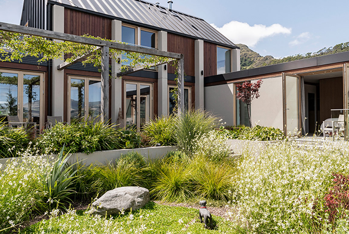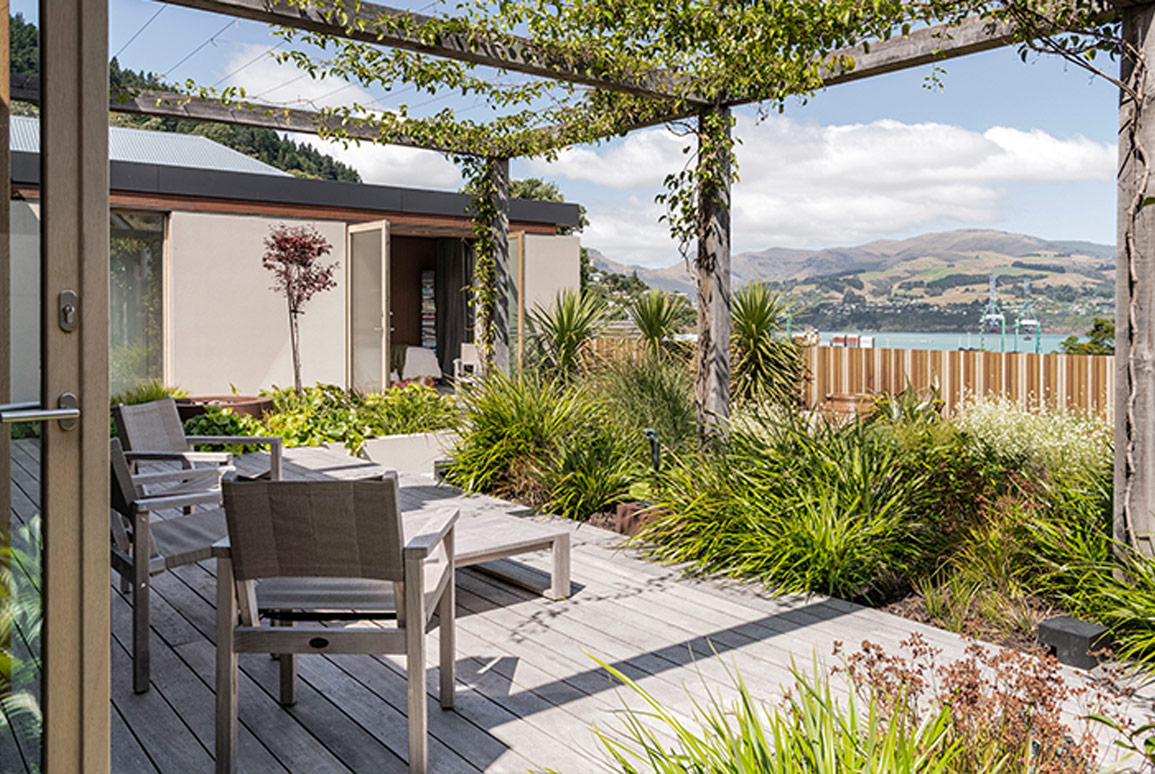 A lushly planted small urban garden to complement a contemporary new house in Lyttelton, Christchurch was awarded a Gold Medal in Landscape Design. The garden provides a range of outdoor living and garden spaces across the terraced site including a breakfast terrace, large deck and no-mow lawn nestled into thick planting. Views out to Lyttelton Port and harbour are celebrated while cedar boundary screens maintain privacy from the adjacent properties. The garden is a restful and relaxing refuge.
