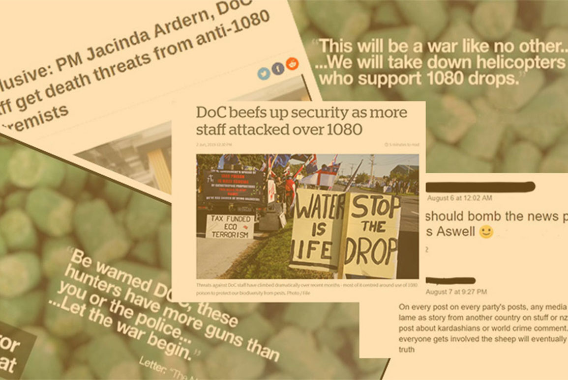 It would be fine if the computer screen is where it stopped; however, this is not the case. In 2019, the Department of Conservation (DOC) reported 23 cases of abuse or injury of staff to the New Zealand Police. In a wave of anti-1080 hostility, DOC staff were threatened, vehicles (both work and private) were vandalised, and staff were assaulted.