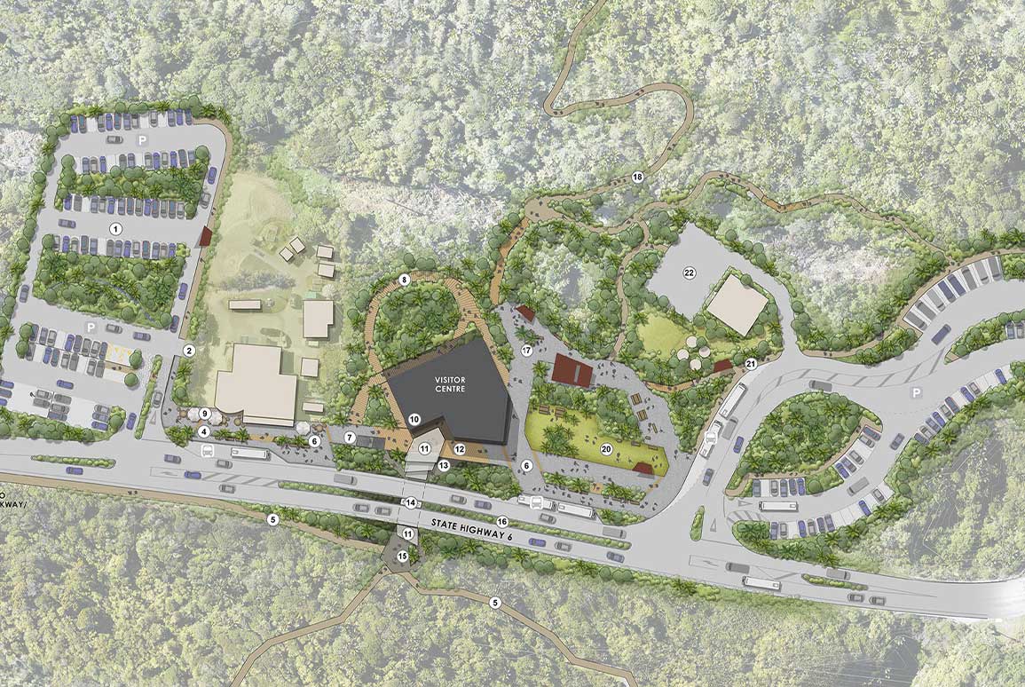The project includes delivery of enhanced infrastructure, including a pedestrian underpass from State Highway 6 to the Pancake Rocks walkway, as well as a new visitor centre.