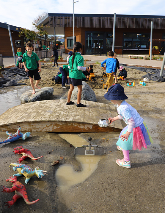 The design was informed by the school's cultural narrative of The Tree For the Nesting Birds - “Our kura and community is like a ngāhere where our children are sheltered and find the resources they need to grow” where the different play zones related to concepts of different activities of New Zealand native birds. The zones include a main adventure play playground, sand and water play, a remembrance space, pump track and a nature play area.