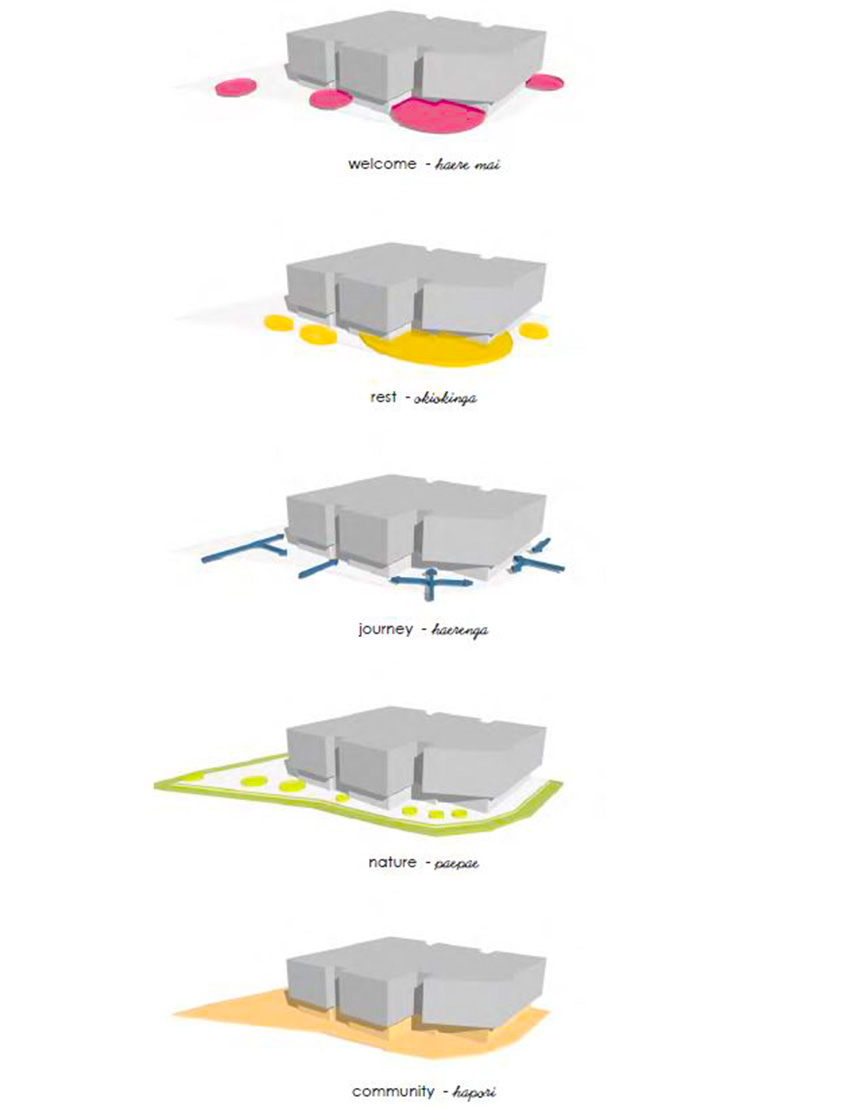 Collaborative design workshops with Waikato-Tainui throughout the design development provided a framework for the work in progress and inclusion of a meaningful, appropriate, and approved cultural narrative embodying Waikato-Tainui’s identity and connection to the whenua.