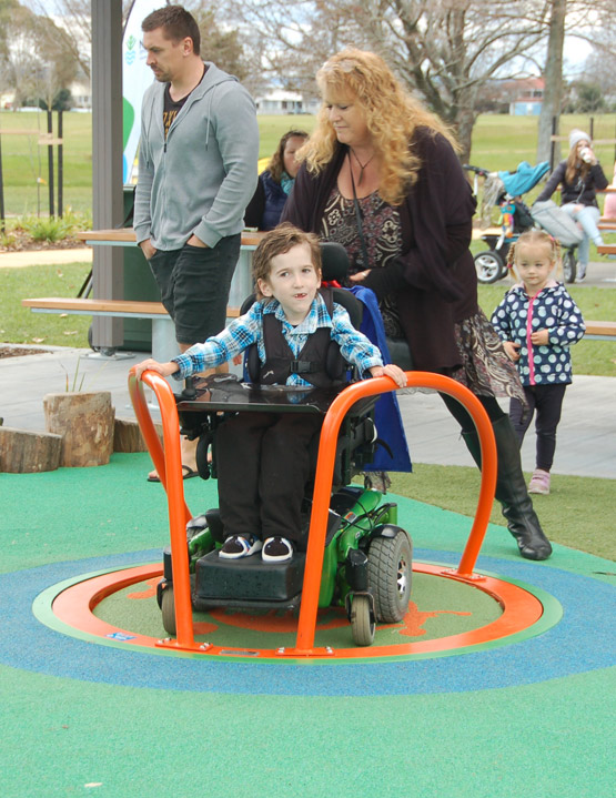 - non-isolating equipment allowing all abilities to play alongside each other. For example, a mini tower that is wheelchair accessible via a ramp, with a double width slide so that caregivers can accompany tamariki down the slide