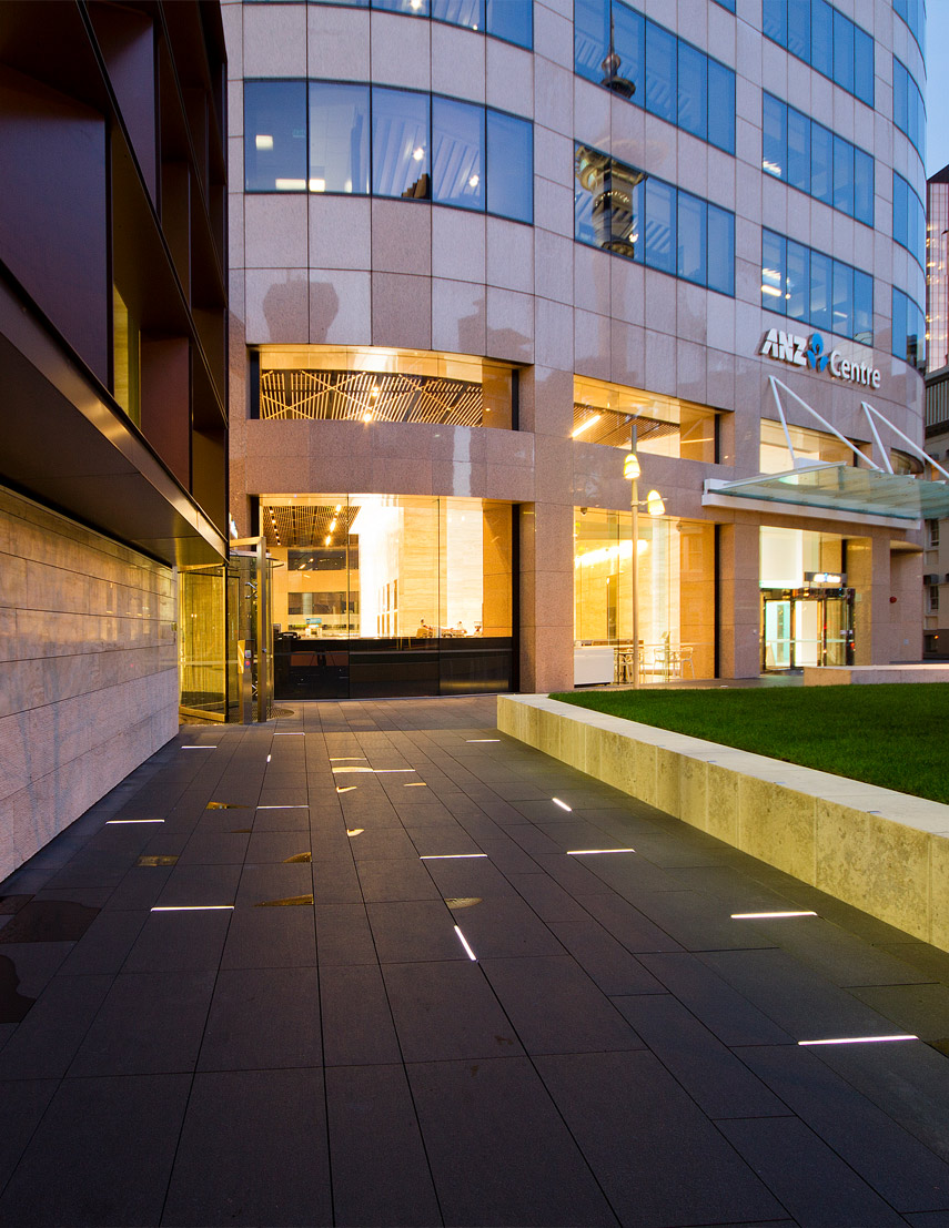 The ANZ Centre is a large scale podium refurbishment that sought to significantly improve the public space surrounding the building. Precinct Properties wanted the public plaza to maintain and reflect the quality of the adjacent public realm (St Patrick’s Square). The challenge was delivering the project within the tight timeframes, being part of a large multi-discipline design team and working with an existing structure and the design parameters that were set over 25 years ago. Landscape architects Boffa Miskell were brought on board at an early stage to help with the re-design of the plaza at the base of the tower, bordering Swanson and Federal Streets.