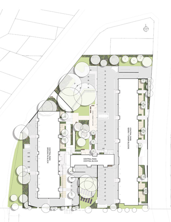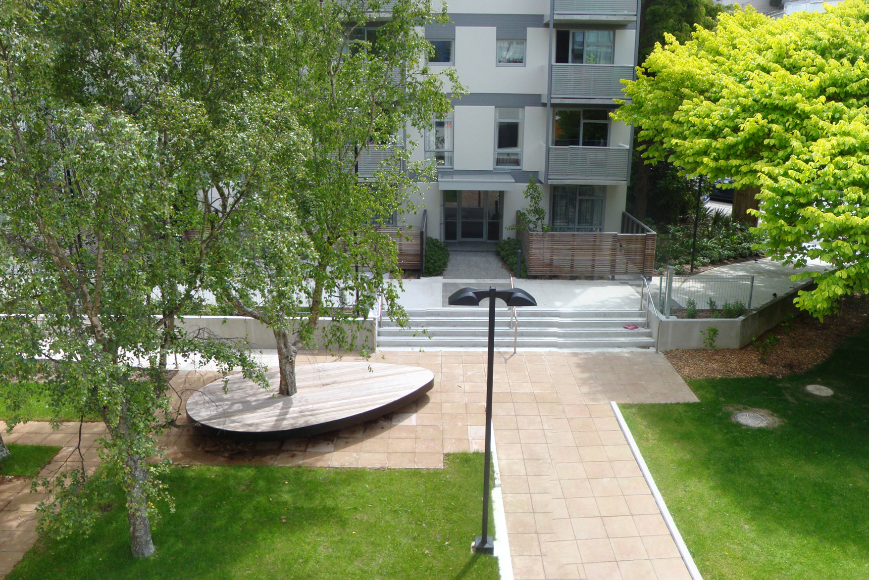 The central courtyard, with well established trees, was the focus of landscape improvements and community activities. By removing roads within the site, forming a new vehicle access, and creating new pedestrian links through the site and to new community rooms, the central green space is now a significantly improved environment for tenants.