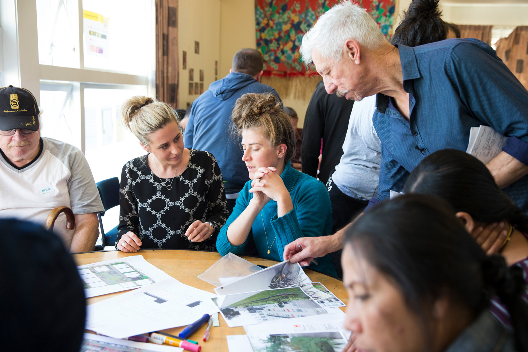 Timber screens separate private courtyards from public space. New steps and ramp access to the community rooms and ramped access to ground floor units give greater accessibility. The complex has been made a much safer environment by dividing housing blocks into smaller units, having upper units overlook public areas, improving exterior lighting and installing clear wayfinding. New community rooms open out to the grassed central court, with deck seating and fruit trees.