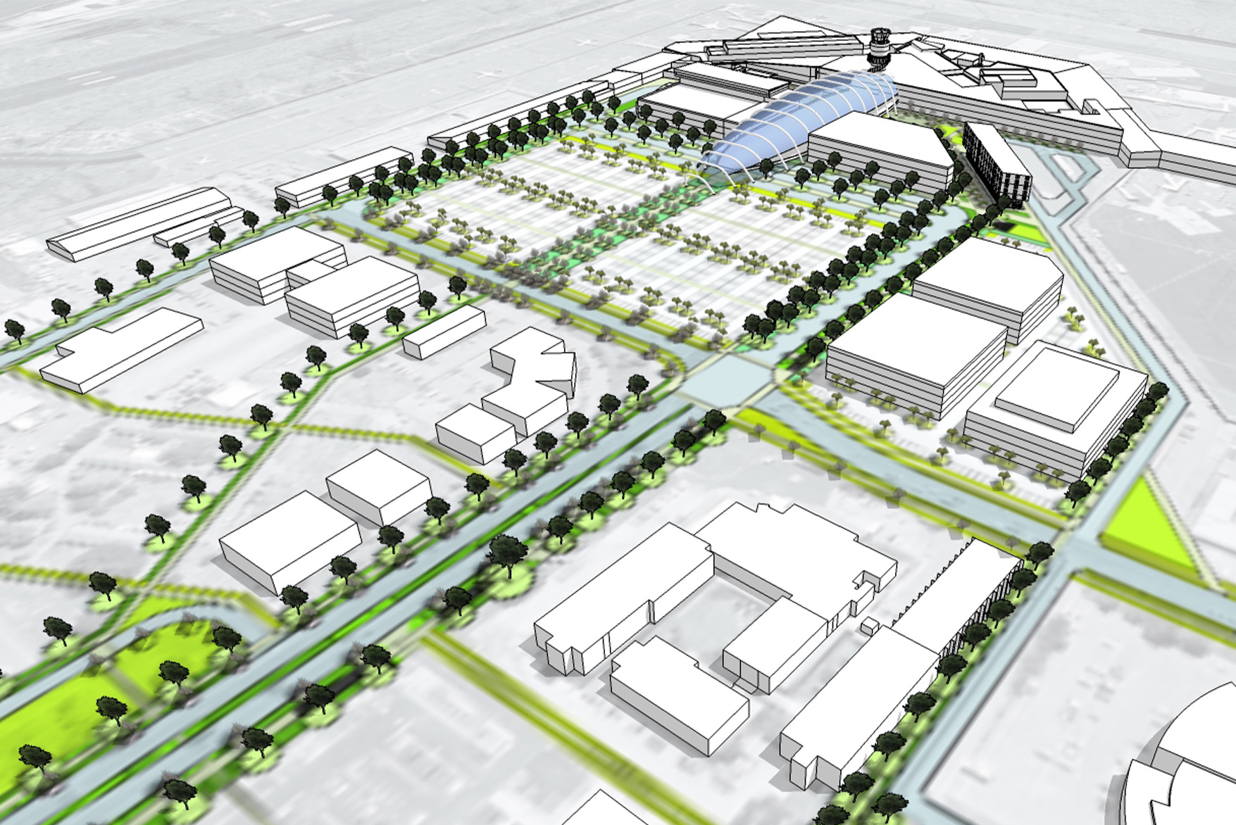 Our masterplan work included the identification of key projects and staging of works the airport will seek to complete in the next 20 years. Key projects include reconfiguration of access to the terminal with an integrated ring road, set down areas, car parking and cover access to the terminal; redevelopment of Memorial Avenue as a grand entry boulevard and large plaza space.