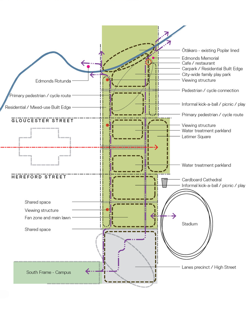 The initial phase of work involved gaining and understanding of the existing context, values, city structure and pre-quake issues, and market drivers. Five major urban design challenges were identified.