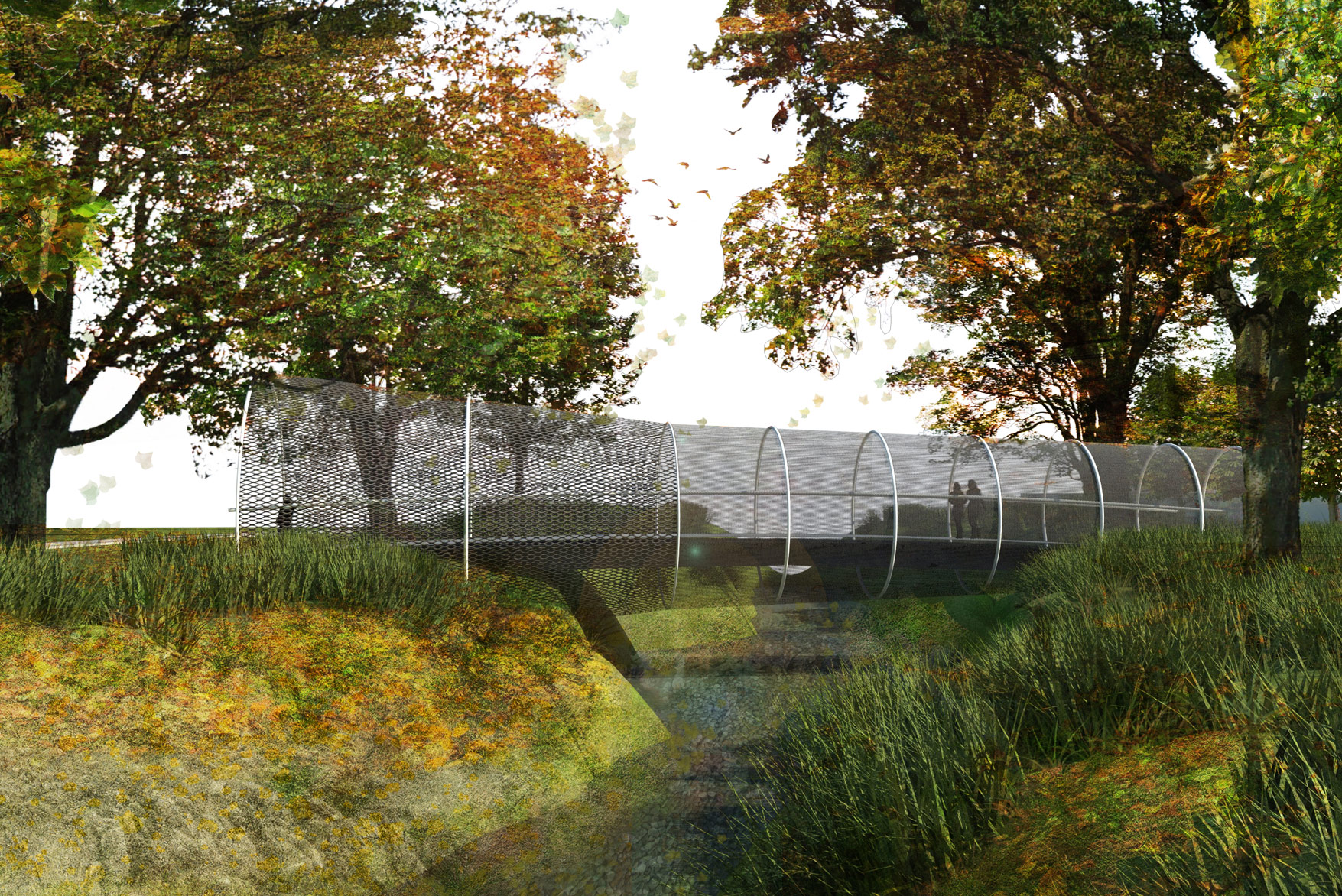 Our landscape architects worked with mana whenua and the wider project team to develop the Hinaki Bridge concept design. The design references the woven flax eel traps used by Māori in the creek.