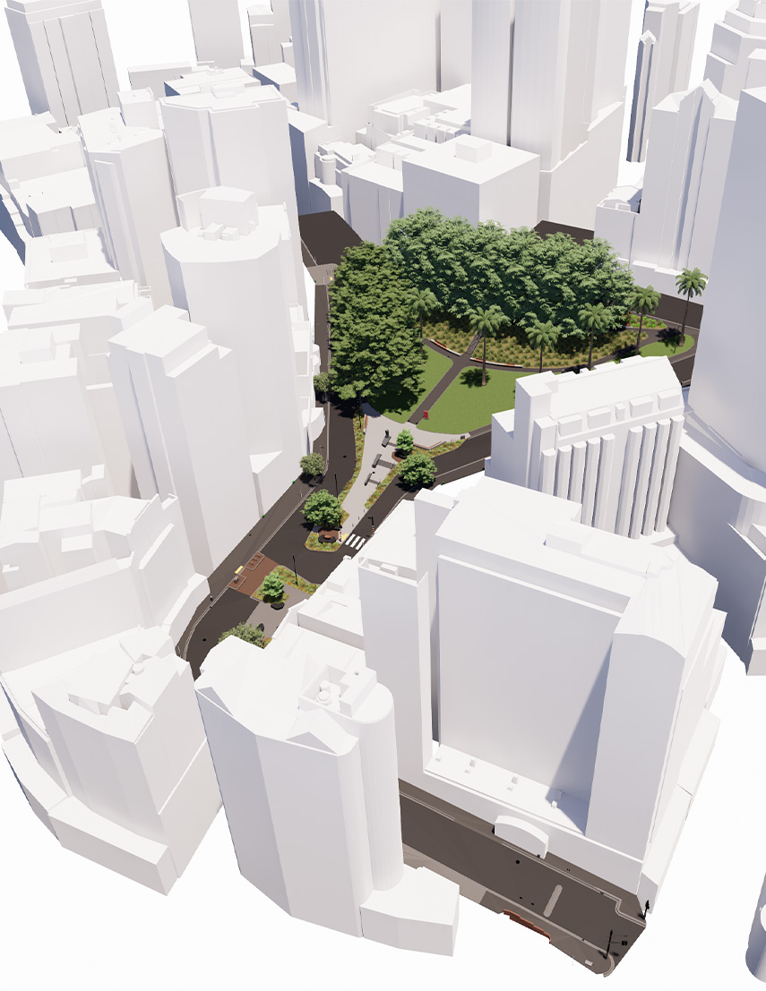 The Emily Place Improvement Project will create a safe, vibrant public space in Auckland's city centre and promote community well-being. The project focuses on supporting diverse public life with functional, social, and cultural opportunities, celebrating local history and cultural narratives, and enhancing the urban environment with green retreats and ecological connections.