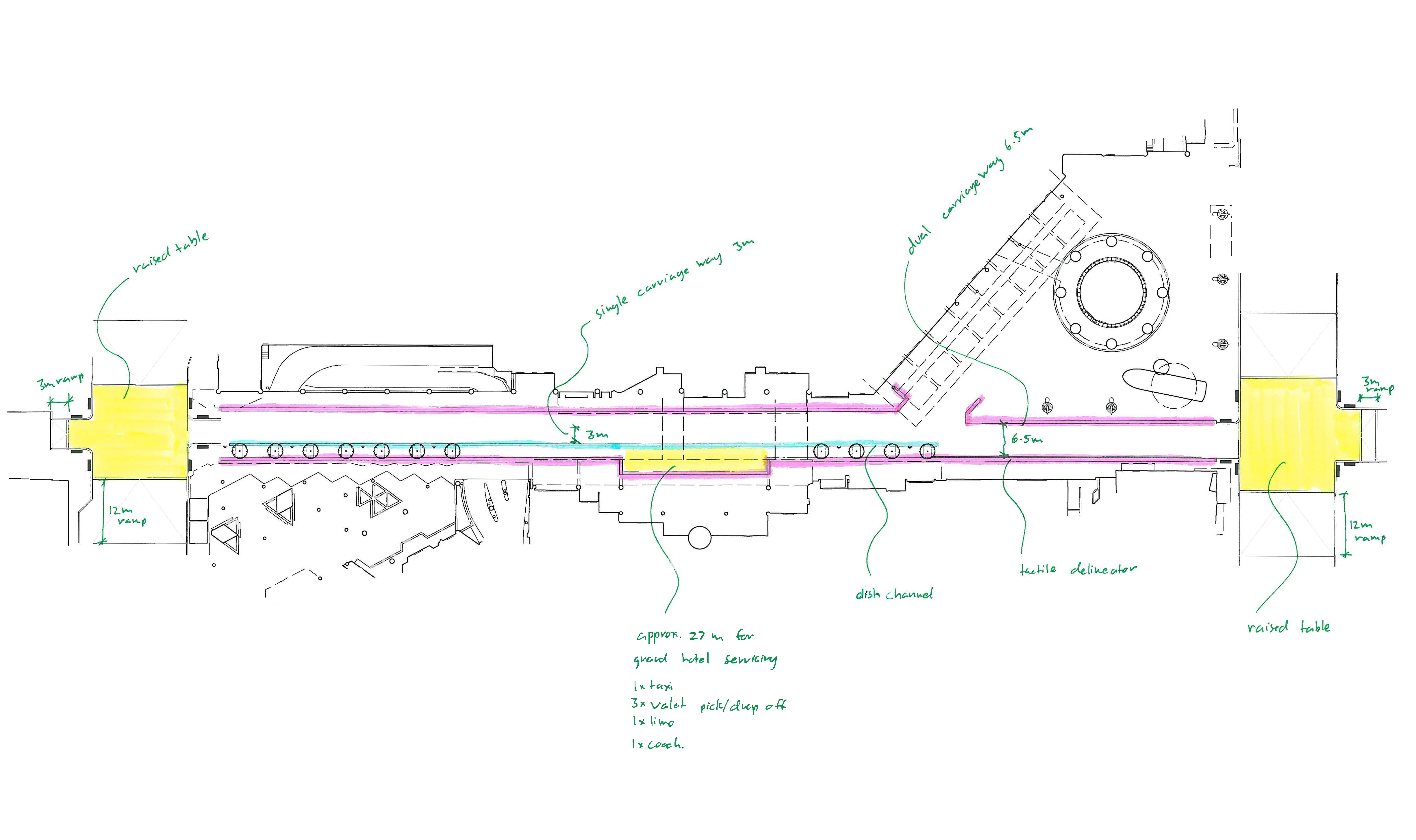 The design team addressed a number of issues. These included the lack of an identifiable and enjoyable walking route, physical barriers to pedestrian movement, sporadic ground floor activation, lack of space for outdoor activity, and an inability to support night-time activity in Federal Street alone. The possibilities for the transformation of Sky Tower Plaza were of equal if not greater significance.
