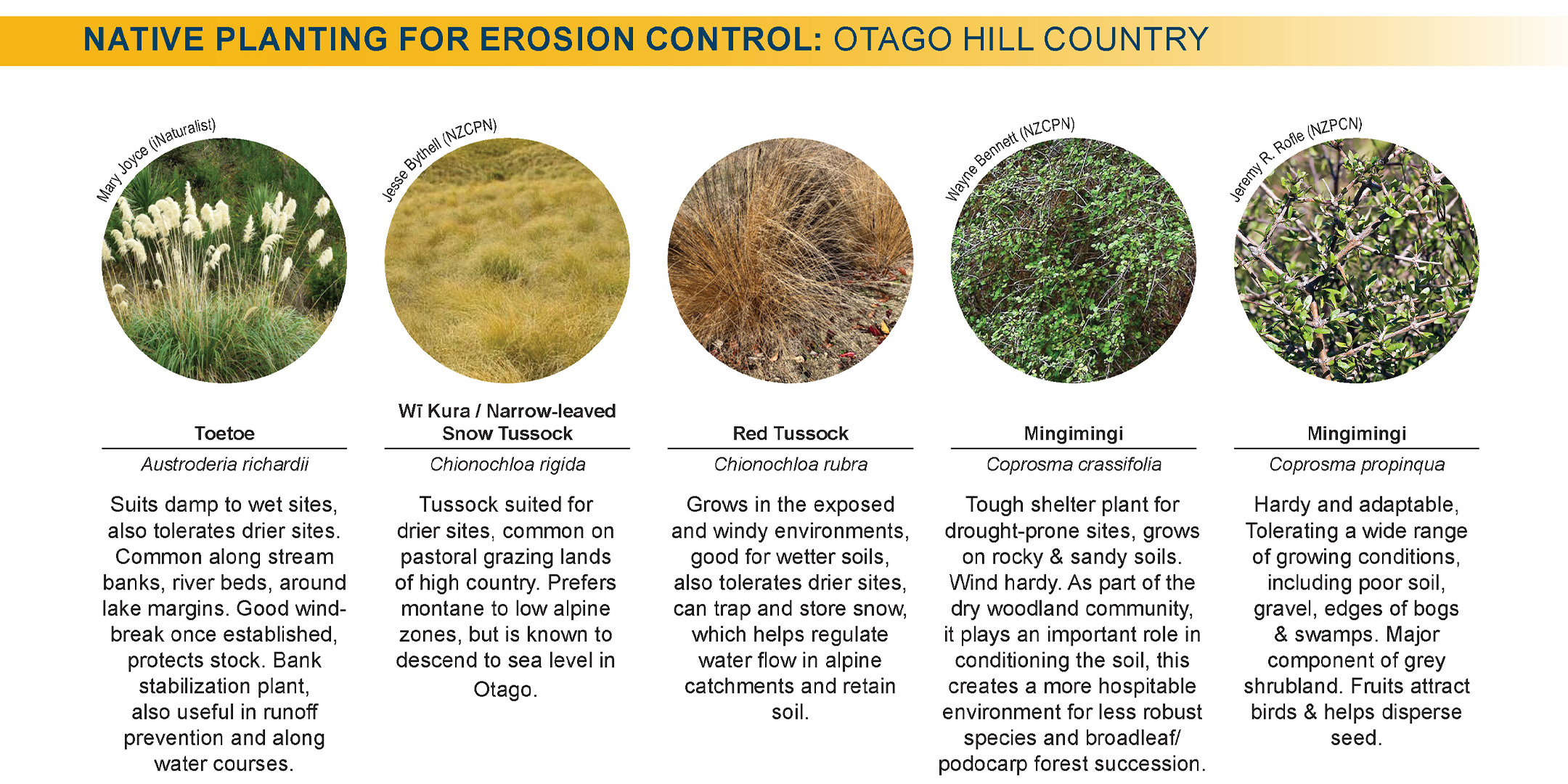 Boffa Miskell worked with erosion specialists Ridley Dunphy Environmental to draw on the learnings from more developed erosion control programs in regions such as Waikato and Nelson and prepare erosion control plan templates, a decision flow chart and develop a recommended vegetation species list for high country land use types.
