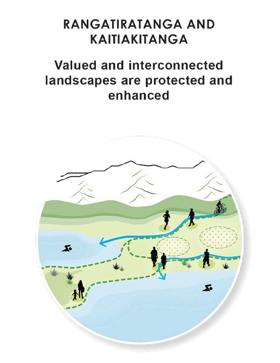 Protect and enhance interconnected landscapes, indigenous biodiversity, and mahinga kai. Promote nature-based resilience and ecological connectivity from mountains to sea.