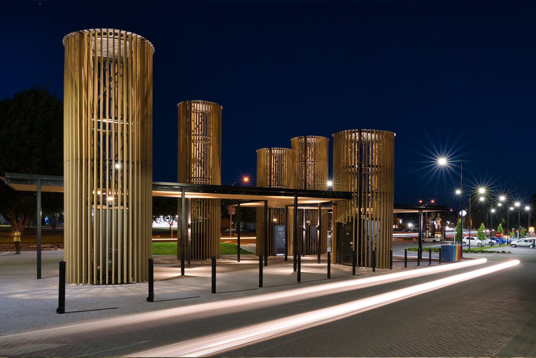 Tokoroa is a small town in the Central North Island of New Zealand. Once a thriving industry town driven by forestry and farming, people have moved to bigger centres resulting in steady decline for the town itself. The redevelopment of Leith Place provides a flexible, visually interesting space to draw people in from the adjacent motorway.