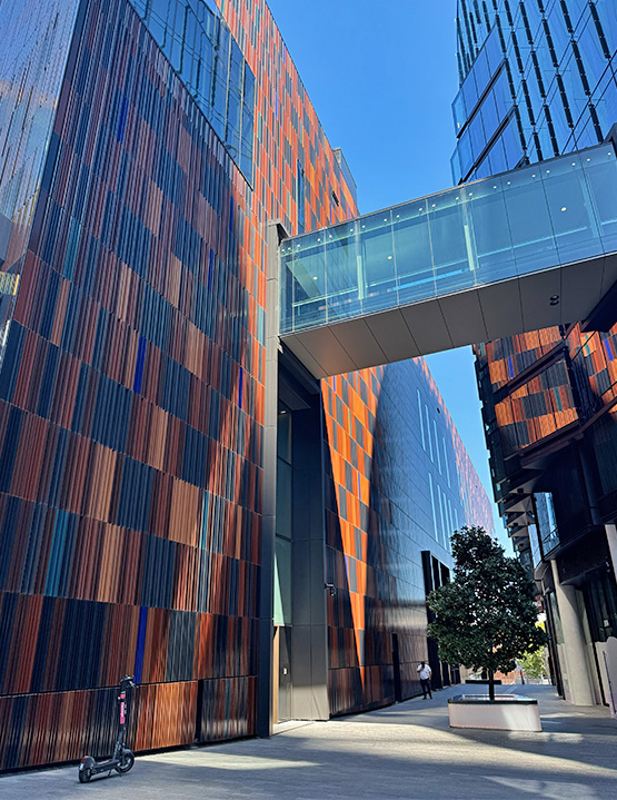 A primary design intent has been for the buildings to be outwards-focused and provide opportunity for activation of the surrounding streets. By considering the built form, the ground floor functions and streetscape together, the development – which includes including a new laneway and plaza – aims to enrich the public life capacity around this city block.