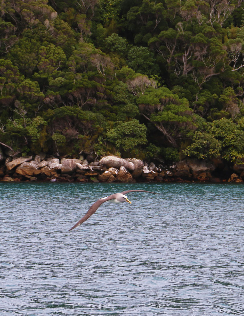 Within the seascape or the marine environment, Rakiura Stewart Island is located within the Southern Ocean, at one of the world’s great oceanic boundaries – the subtropical convergence, where the prevailing westerly wind and currents from the Tasman Sea moderate the temperatures protecting the island from the cooler subantarctic waters further south. An array of marine wildlife lives within the sheltered and more exposed waters off Rakiura Stewart Island including fur seals, sea lions and yellow-eyed penguins. The marine environment of Stewart Island is one of the largest areas of highly natural marine habitats in New Zealand. It is the southern extreme of many mainland species and communities.