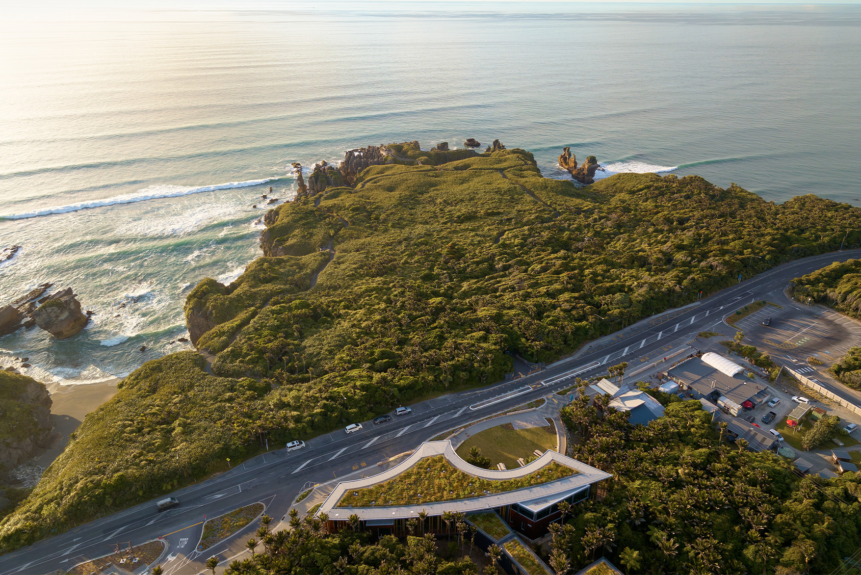 The Punangairi Visitor Experience Centre in Punakaiki | Dolomite Point is the result of a decade-long process and a collaborative vision to revitalise one of Aotearoa New Zealand's most iconic tourism destinations while strengthening the cultural presence and economic well-being of Ngāti Waewae.