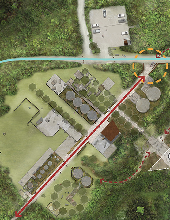 The concept plan explores how the process plant foundations could be retained and developed as a recreational point of interest with links to a wider trail network through adjacent Victoria Forest Park to Reefton and further afield to other inland West Coast destinations.