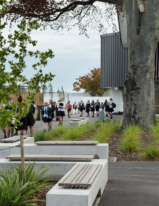 Boffa Miskell, in partnership with Athfield Architects, developed the master plan for the school. The school believes that learning is not confined to the classroom, so the masterplan provides a range of external and internal spaces designed to encourage interaction between staff and students, support youthful creativity and provide opportunities for learning.