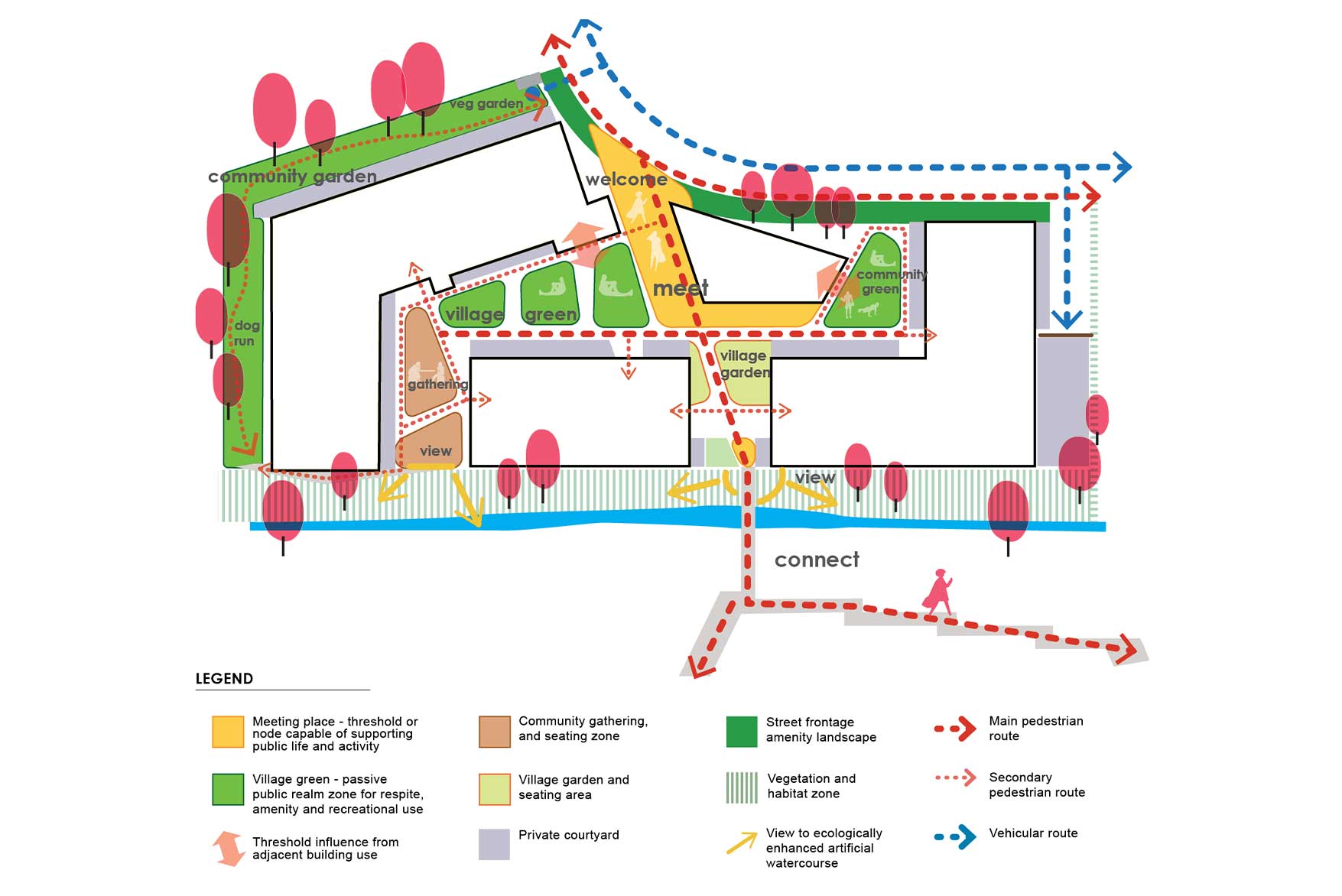 The landscape design strategy will contribute to establishing the Sylvia Park BTR as a community-focused, sustainable and safe residential development. This accessible neighbourhood will be a place to discover and inhabit and a place for every community member to enjoy.