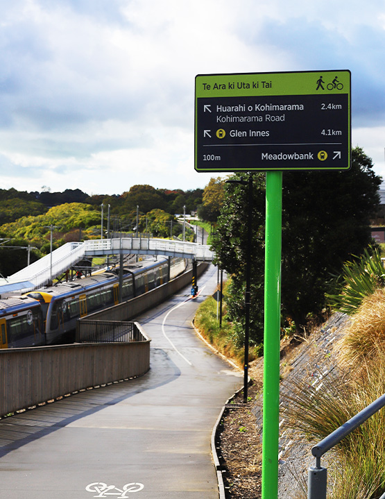 The overarching design was guided by the Urban Design and Cultural Landscape Framework (UDCLF) developed with the Auckland Transport mana whenua advisory group. Key themes emerged that shaped the design outcomes, including manaakitanga at key locations to aid way-finding, acknowledgement of cultural heritage and purākau as appropriate, connection and care of te taiao as a reciprocal relationship based on the Māori view of the natural world, and a celebration of active movement for health, wellbeing, and social connection.