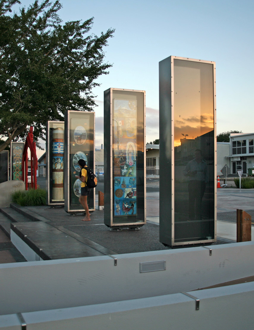 Boffa Miskell landscape architects designed and supervised the redevelopment of the former Te Puke Heritage Walkway, and in Stae 2 of the project, developed a public plaza in adjacent Jubilee Park. This redevelopment also involved the design and construction of a new events stage in Jubilee Park and a new playground flanking the courtyard space.