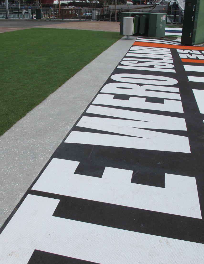 Waterfront Auckland commissioned Boffa Miskell to design a five year, temporary route-marking installation to emphasise the new pedestrian route that now crosses open space previously used for car parking.
