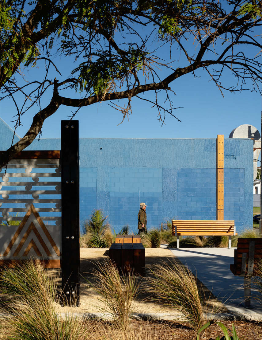 Borrowing ideas from the hall’s varied historical use, including cinematic projection and theatre; and recalling that the land on which the hall was located is important to Ngāti Toa, we worked with the council and local iwi to create a welcoming outdoor space that could accommodate aspects of the activities that the hall had once hosted.
