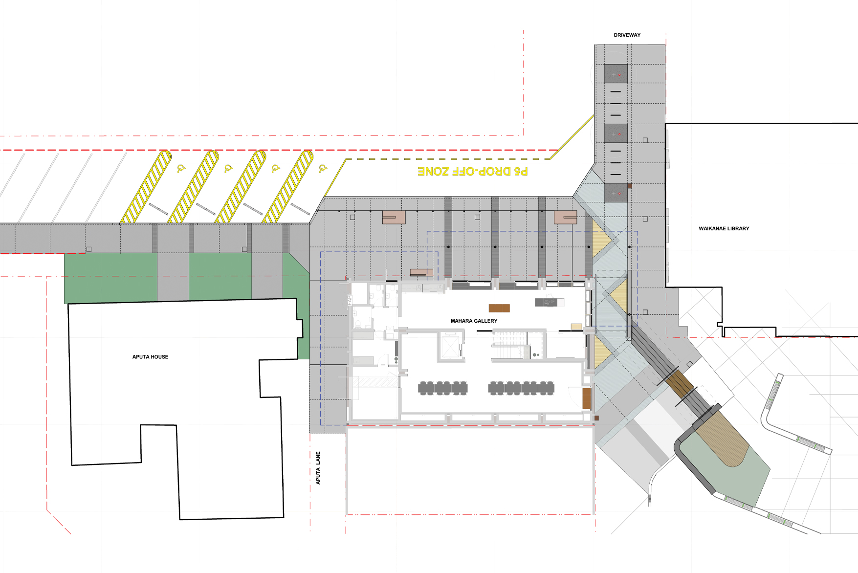 Integrating the landscape around the newly refurbished gallery with the Mahara Place civic space and Waikanae town centre.