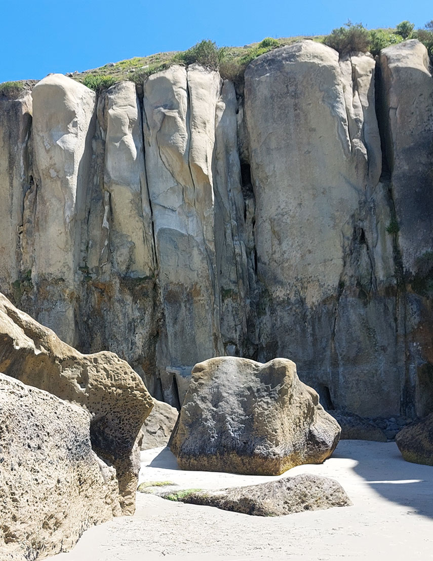 Mana whenua has navigated waka (vessels) down this coastline for centuries. In the 1870s, a hand-carved tunnel in the rock face was commissioned by the Cargill family to provide access to the beach.