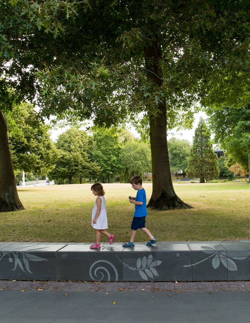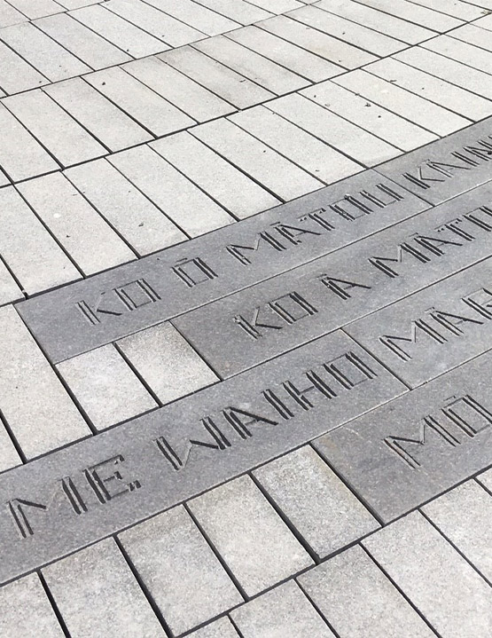 Ngāi Tūāhuriri provided input into all stages of the process. Their influence is felt throughout the square’s design, and visible through integrated artworks and interventions conceived and delivered by Ngāi Tahu artists, including: