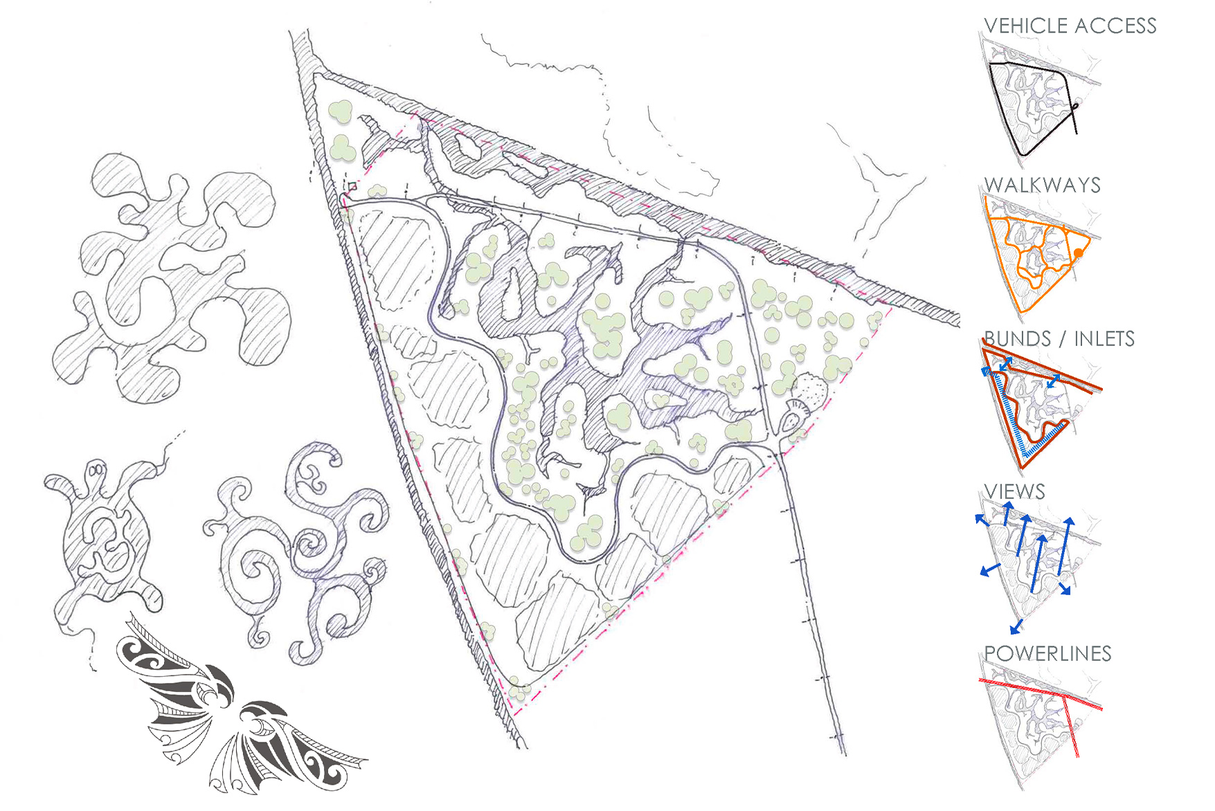 Boffa Miskell landscape architects have developed and resolved the landscape vision for the overall wetland, working closely with the wider design team, including the engineers, the client and iwi collectives.