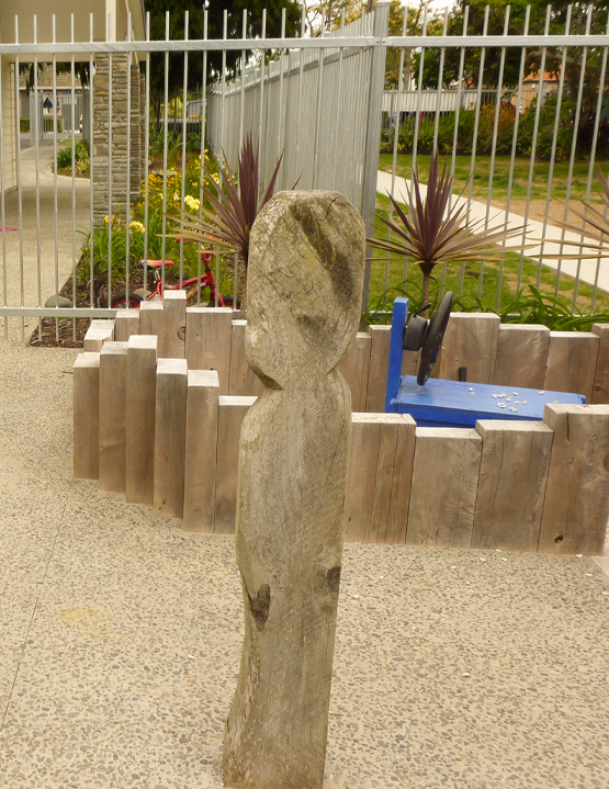 An outdoor area for children at a new kindergarten, where natural materials and colours are used to give a natural feel to the site.