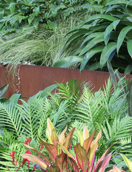 Native and exotic plants were chosen to create a tropical rainforest feel in Auckland’s wetter, more temperate environment. While some plants were able to be confirmed early and grown on, much was flexible to the end and overplanted at tight spacings to provide the experience of a mature forest setting.