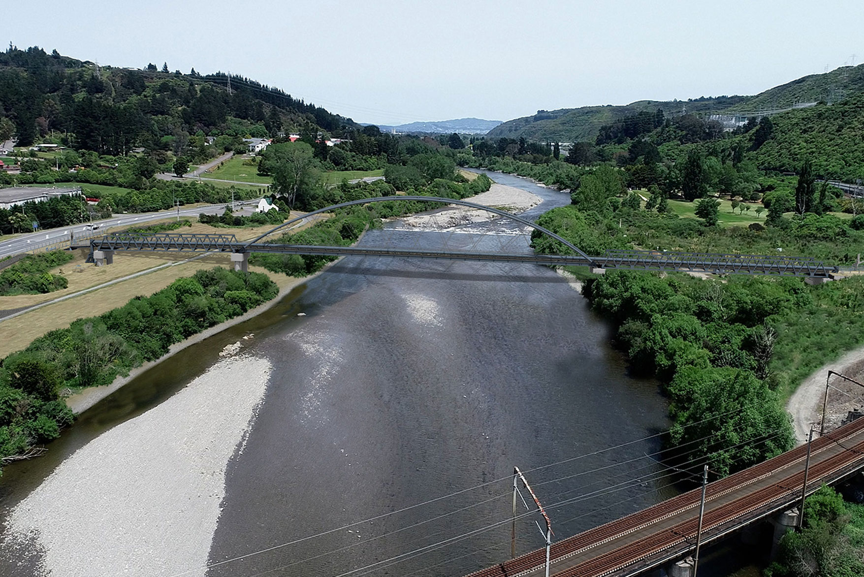 The location within the Te Awa Kairangi/Hutt River corridor meant the appearance of the bridge, its integration with the surrounding landscape, and ability to create improved recreational connections were important outcomes. The urban design and landscape architecture treatments were undertaken with two key considerations – the bridge as an architectural feature within the river corridor, and the bridge as a user experience for pedestrians and cyclists.